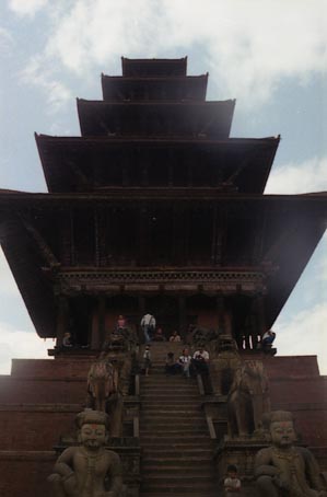王宮を囲んで数多くの寺院が立ち並ぶが、いずれもレンガで造られていて町全体が赤茶けたレンガの固まりのようだ。