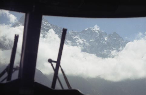 機首を左に高度を下げると、深いドゥ−ド・コシの谷から立ち上がったテラスのようなラフの滑走路が山の斜面に向かって見えて来る。