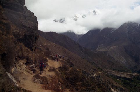 雲間に遠く現れるアマ・ダブラムを眺めながら快調に飛ばす。