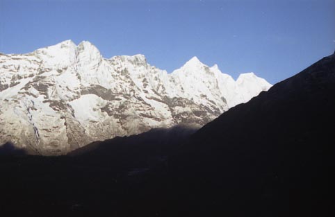 ロールワリンの峰々は早くから光を受けて白く輝く。