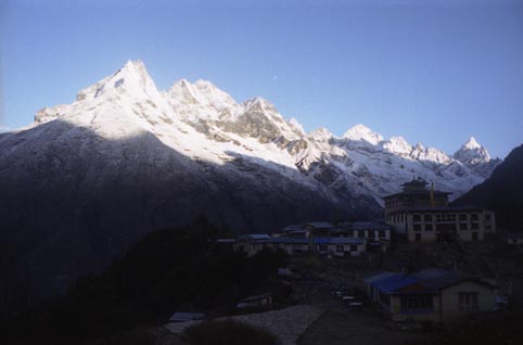 タンボチェの朝/ゴンパとク−ンビラ(5761m)