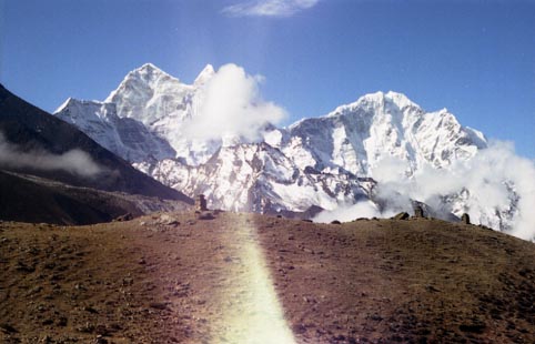 アマ・ダブラムから右に眼をやると、白く輝くカンテガとタムセルクがグッと張り出して近付いて見え、ここではしばし至福の時を過ごすことが出来た。