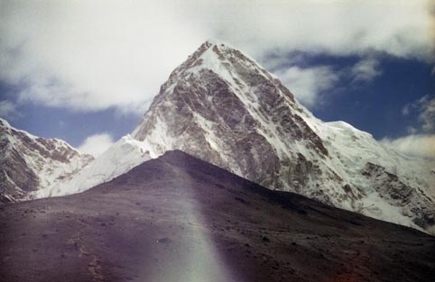 カラ・パタール越しにプモ・リ(7161m)がデンとそびえ立っている。