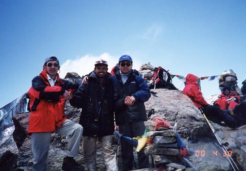 ゴーキョ・ピークに無事登頂を祝って、ガイドのラムに労いと感謝の握手を交わして記念写真を一枚。